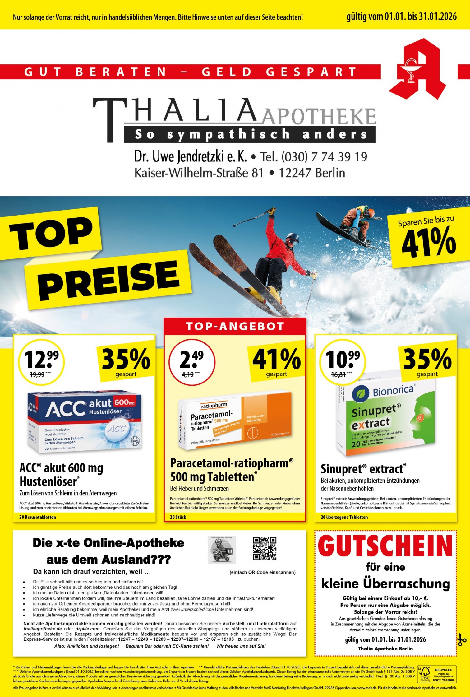 - Sie haben auch vor Ort einen Ansprechpartner, der Ihnen zuverlässig hilft. So sind Sie nicht auf Ferndiagnosen angewiesen! Denn Ihr Apotheker steht Ihnen in der Thalia-Apotheke jederzeit auch direkt gegenüber.